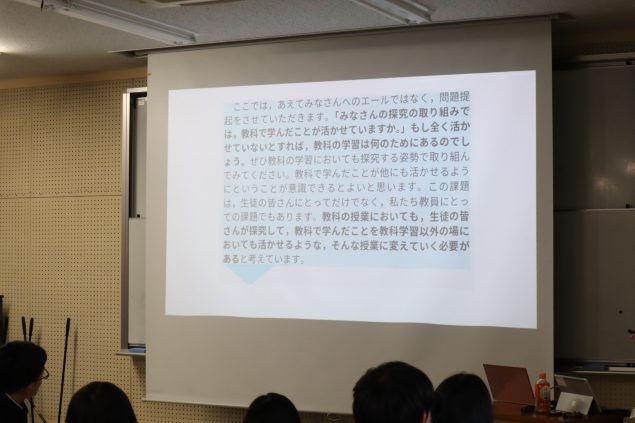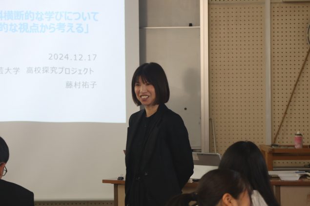 12月17日(火)、東大津高校に東京学芸大学の藤村祐子准教授をお招きし、「教科横断的な学びについて多角的な視点で考える」講座を実施していただきました。
